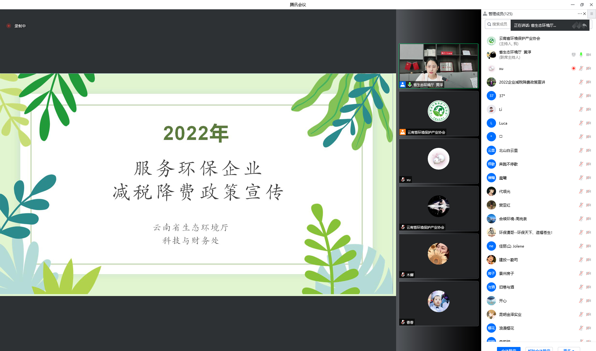 為深入貫徹黨中央國務(wù)院穩(wěn)住宏觀經(jīng)濟(jì)大盤的系列部署,積極助力企業(yè)紓困,服務(wù)環(huán)保企業(yè),云南省生態(tài)環(huán)境廳聯(lián)合云南省環(huán)境保護(hù)產(chǎn)業(yè)協(xié)會于2022年6月10日上午開展了面向全省環(huán)保企業(yè)的減稅降費(fèi)政策宣講活動(dòng),云南省生態(tài)環(huán)境廳科技與財(cái)務(wù)處一級主任科員黃淳介紹了2022年新出臺的國家及云南省的相關(guān)減稅降費(fèi)政策。
